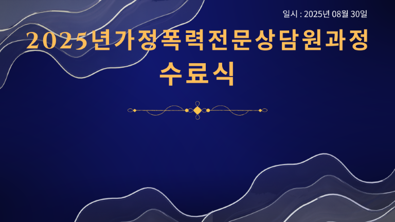 2025년 8월 30일 가정폭력전문상담원과정 수료식 페이지 정보 작성자 최고관리자 댓글 0건 조회 636회 작성일 25-09-03 09:49 목록 본문 이전글2025년 9월 청소년문화의집 청소년 이성교제 및 피임 교육실시 25.09.17 다음글2025년 9월 20일 아동청소년들의 “심미적 감수성 향상“을 위한 자연 미술놀이 프로그램 25.08.22 댓글 0 댓글목록 등록된 댓글이 없습니다. 목록