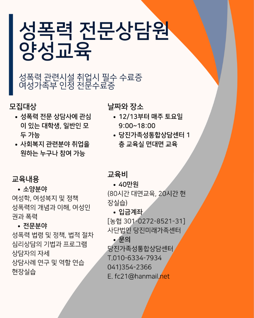 2025년 12월13일 성폭력 전문 상담원과정 모집